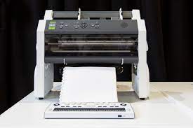 A Braille printer, commonly known as a Braille embosser, is an impact printer that renders text as