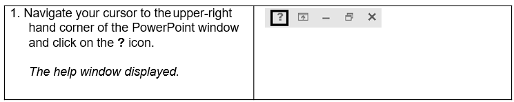 You can get help on a PowerPoint task or feature using the PowerPoint Help window, which can be launched using the help button from the PowerPoint windows. The PowerPoint Help window can search both online and offline sources to provide assistance and training and answer your questions.