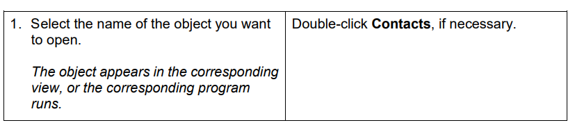 such as opening an object in the design view.
