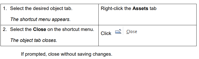 An opened tab can be closed by selecting Close from the shortcut menu displayed