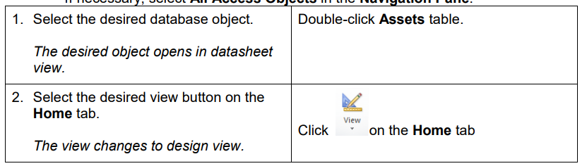 As you continue working with Access, you will find yourself switching between the Design view and the Datasheet view.
